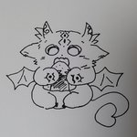 でび様お誕生日おめでとうございます🎂 ベビーフェイスな形代ができました。 羽のもげた跡は痛々しいし、色ムラも酷いですが…後頭部と大きなお耳(誇張)が自慢です。 捧げます♥ 粘土難しい #でびるさま生誕祭2020 #でびるさまにささげるえ (?)