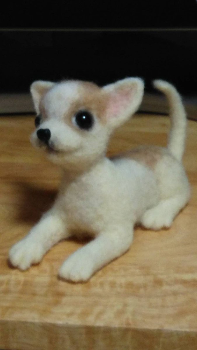 母が作ったオーダーのチワワちゃん 写真だけ見て作る母と 一緒に暮らしてる家族のイメージは やはり違うと思うので… どう思う?と何度も私に写真送ってきて 悩み悩み作ってました。 気に入ってもらえるといいな〜 #羊毛フェルト