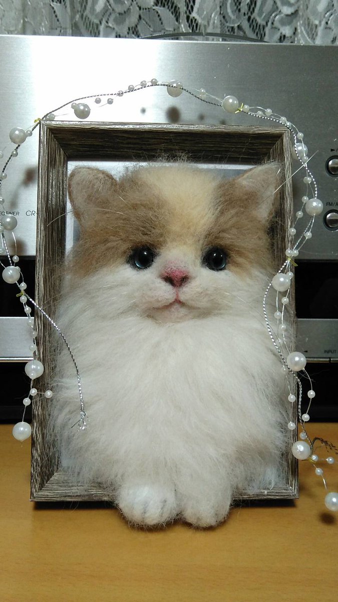 母の羊毛フェルト作品に いいねたくさんいただけて嬉しくて 調子に乗ってまた投稿しちゃいます(*´艸`) 白いペルシャ風な🐱は 母の可愛がってたお星様になった子です。 見上げてくれる瞳がたまらない可愛さです ✨ #羊毛フェルト