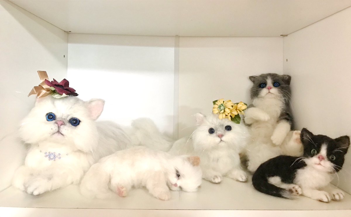 母の作ったにゃんこコレクション ネックレスしてる子は お空にいる子なんです #羊毛フェルト #羊毛フェルト猫