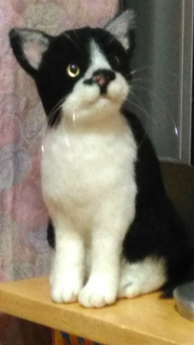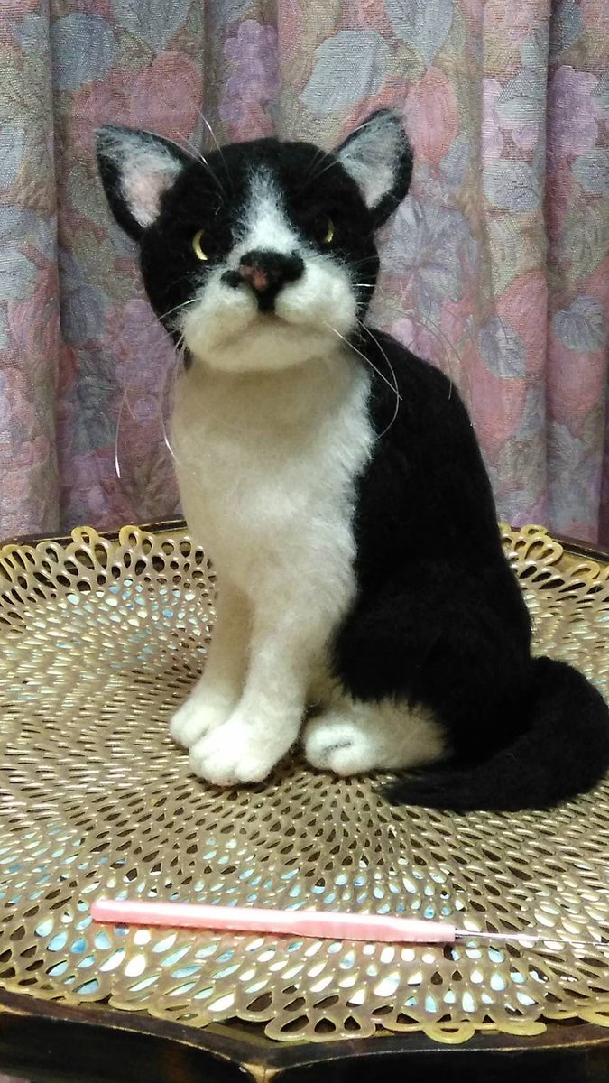 実家の母が作ったにゃんこちゃん よくお庭に遊びにくる子らしい(*´艸`) #羊毛フェルト #羊毛フェルト猫
