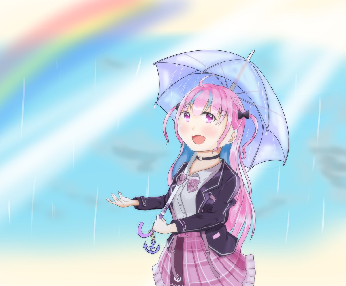 #あくあーと #湊あくあ #イラスト 下校中に雨上がりに遭遇するあくたん