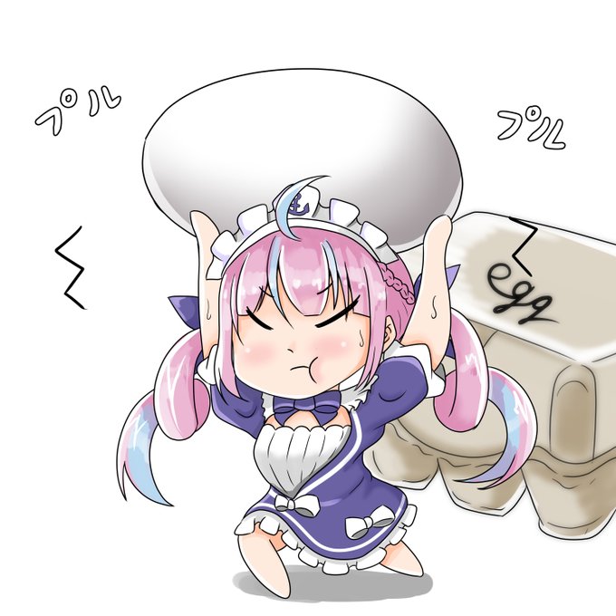 2 7 #あくあーと #イラスト ちびあくたんが 何かを作ろうとしてくれているぞ! まずは卵を準備しているようだ! (;゚Д゚)<ダイジョウブ? 22/12/16 19:49
