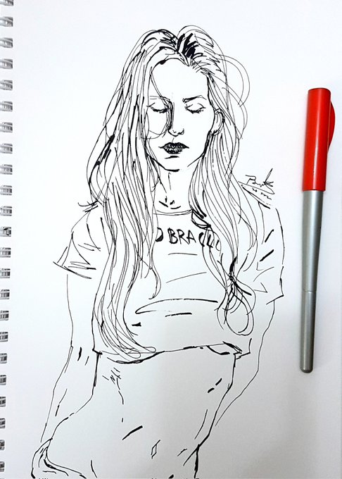 quick sketch with @PilotPenUSA 's parallel pen #pendrawing #sketch #sketchbook #fanart #inspiredby @Missmodelchara #portraitdrawing #drawthisinyourstyle