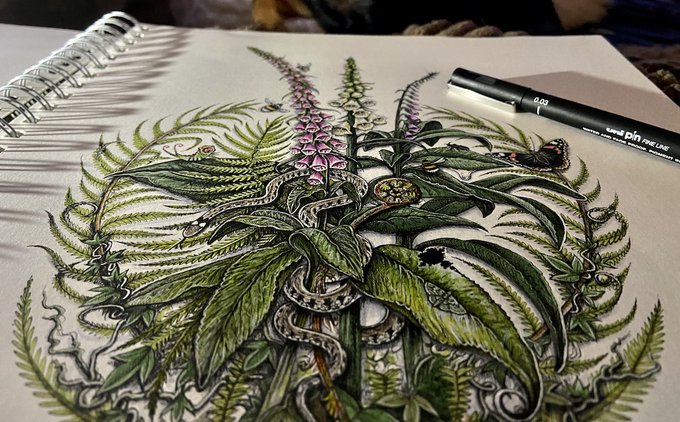 Foxgloves & Ferns - Limited edition prints AVAILABLE NOW in my shop in 3 different sizes - A1, A2 & A3. #foxgloves #ferns #artistsontwitter #artprint #Devon #illustration #art Click here to buy: bernoid.com/product/foxglo…