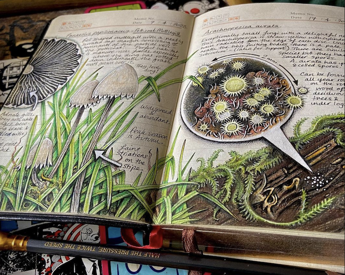 Velvet Shank & Holly Parachute - double page extract from my #FungiJournal for #MushroomMonday