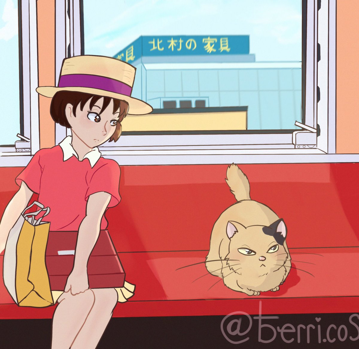Did another #ghiblisceneredraw . This time it was Whisper of the Heart ! I just watched it and it was so cute ! I really enjoyed this train scene , also thinking cats are super fun to draw!#ghibliredraw #studioghibli #studioghiblifanart #whisperoftheheart #whisperoftheheartfanart