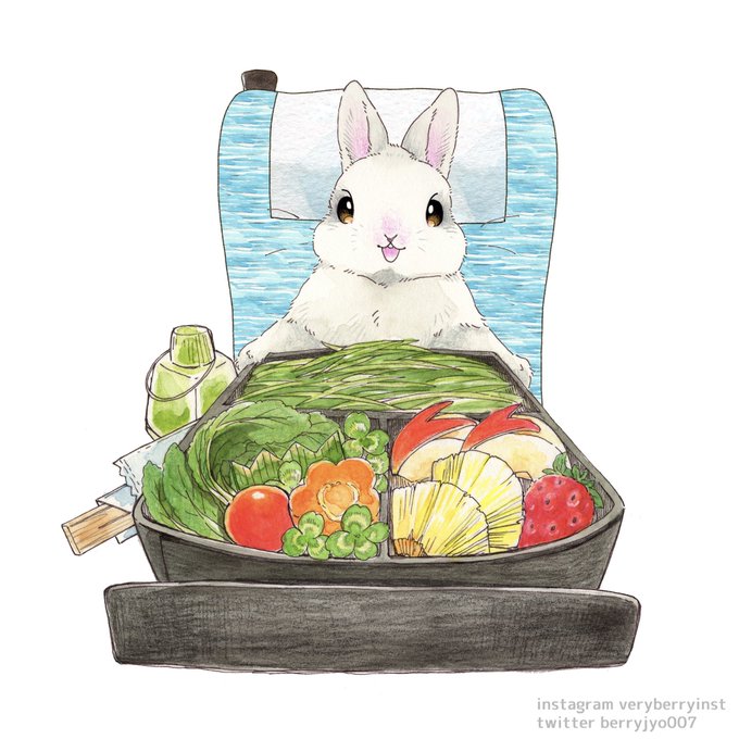 〜うさぎさんのお盆〜 🌸毎日投稿1299日目🌸 おまけイラスト \おいしぃー!/