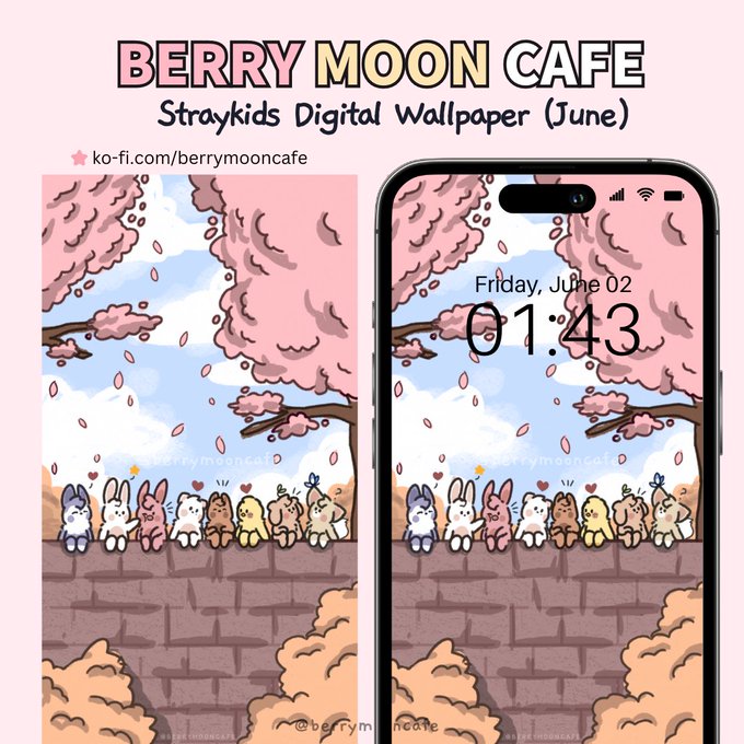 :¨·.·¨: `·.MONTHLY DIGITAL WALLPAPER (JUNE) ♡ ଘ(˵╹ᴗ╹)━☆ CHERRY BLOSSOMS 🌸🌸🌸 – Available for Android and IOS! Links are in the thread 🌱 — #StrayKids #SKZOO #SKZ #skzoofanart #straykidsfanart #스트레이키즈