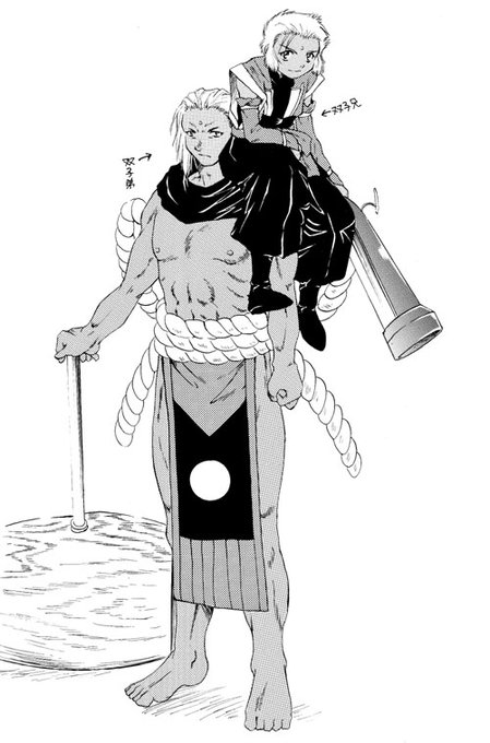 4 13 お題【双子】 日下部家延長データの双子。斬牙(兄・筒)と砕刃(弟・壊) 今見返してみたら完全に戸愚呂兄弟状態でした(無意識の構図) 弟は別に100%バトルモードは持ってないんですが、兄のことは間違いなく「兄者」と呼んでる。 #俺屍週ドロ 22/02/27 01:51