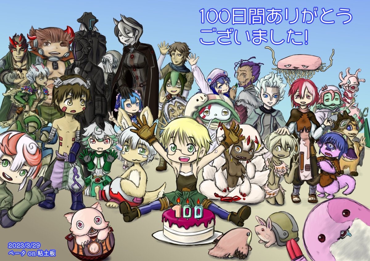完了から2週間過ぎて漸く達成記念画が完成しました。100日以上もおつき合い有難うございました。 途中何度も心が折れましたが、皆様の反応に支えられました。素人の挑戦にお付き合い頂き大大大感謝です🌟 #100日チャレンジ #メイドインアビス