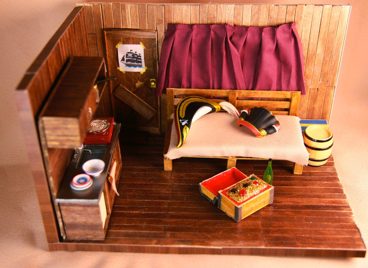 2 7 冬コミ新刊&グッズの最新サークルカットができました! ミニチュアで制作した船長の部屋の写真集、アクキー、フレークシールを頒布予定です!! #C101 #C101新刊 22/12/21 18:44