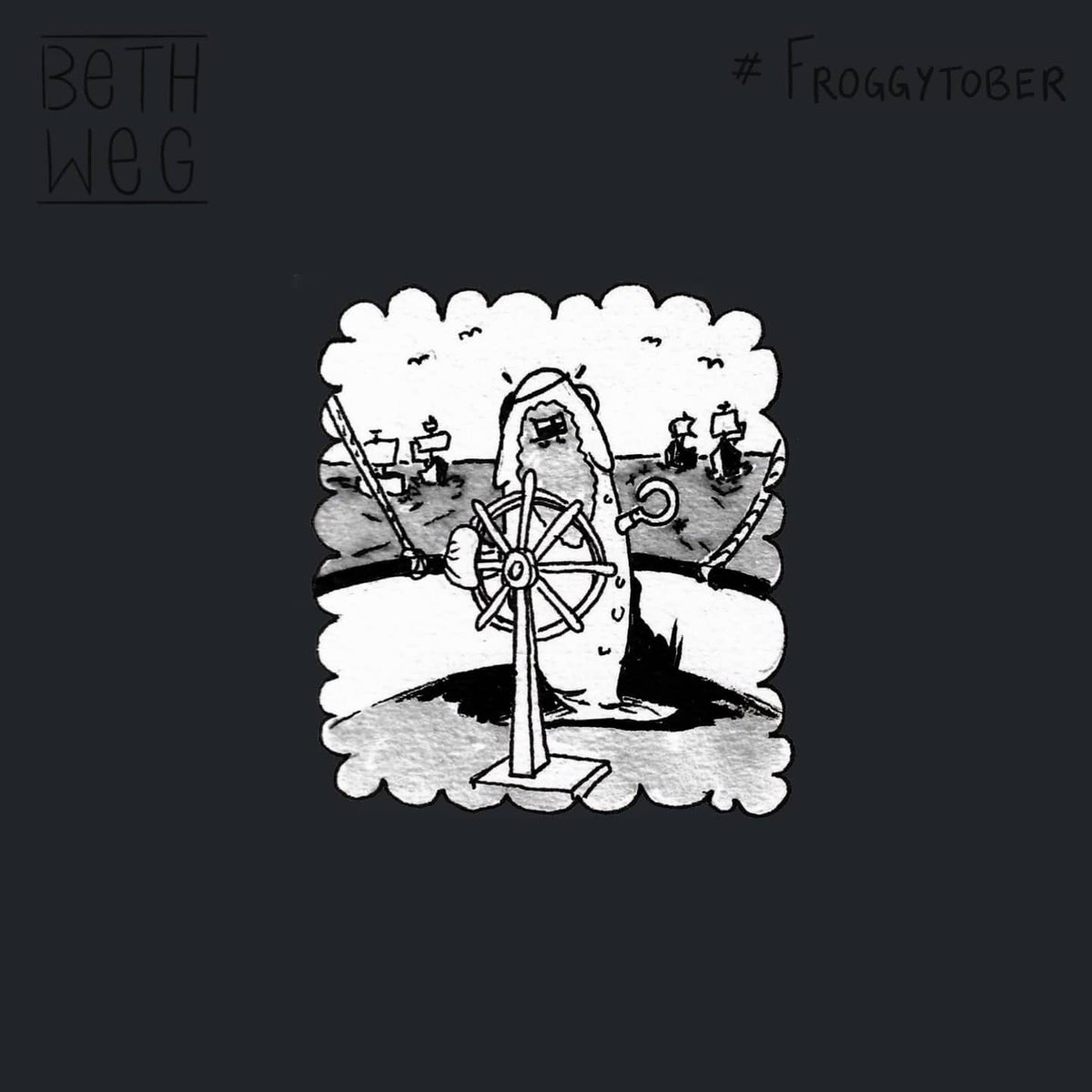 ✨Flashback Continues✨ Cpt. Salmon had everything he'd ever wanted. All the power, all the treasure, all the beard but he could not have the one thing he wish he owned most ... #froggytober #froggysadventure #inktober #inktober2021 #inking #inkstagram #ink #doodle #pen #frog