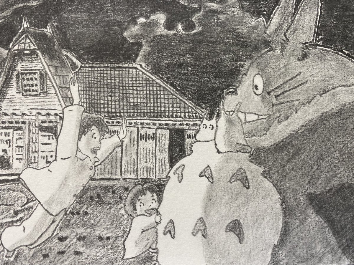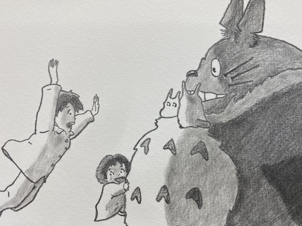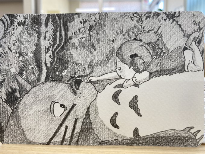 となりの´ ³`°) ♬︎*.:* ふんふふんふんふーふん´ ³`°) ♬︎*.:* ふんふふんふんふーふん´ ³`°) ♬︎*.:* #絵描きさんと繋がりたい #となりのトトロ #ジブリ #鉛筆画 #初めて綿棒使って描いた