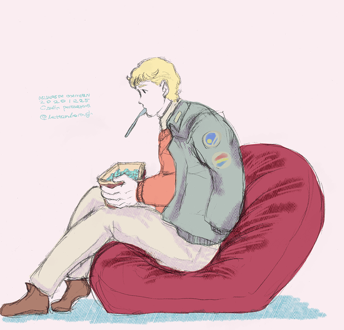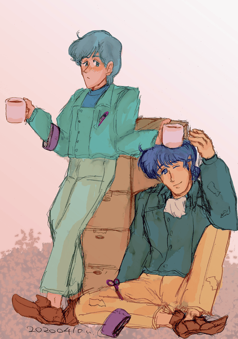 【絵】attenyang…… (CP:ヤンアテ お題:1. 新生活 いつまでたっても新居の荷解きが終わらないヤン先輩と先輩のマグカップで勝手に紅茶を淹れるアッテン……) #logh腐向けCP創作90分チャレンジ #銀河垂れ目伝説