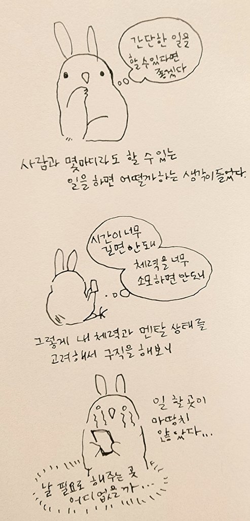 사회공포증 진단을 받고(없는 공포증이 뭐냐...)퇴원 후로 재택으로 했던 웹툰콘티외에 사람을 만나는 일을 해본적이 없는데요 어떤 일을 해보는게 좋을까요? 아직 멘탈도 체력도 보통사람같진않지만 사회재활을 해보고싶어서 일단 제가 살고있는 지역센터에 일자리상담신청을 넣었답니다