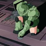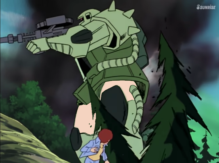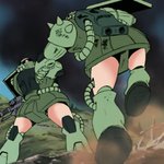 「ガンダム大地に立つ」より。ザクの足に色を塗りました。