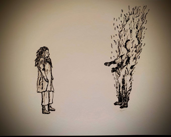 #inktober Flame. This scene from Hereditary was the first thing that came to mind for today's prompt