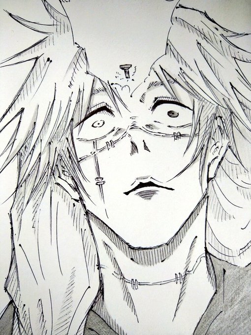 惚れちゃうでしょー的な衝撃が走った今日この頃w(๑º꒳º๑)笑 イメージ図↓↓ (真人君に協力してもらいましたw) #呪術廻戦 #真人 #呪術廻戦ファンアート #呪術廻戦好きな人と繋がりたい #イラスト #模写 #一発書き