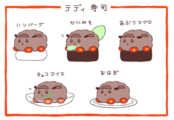 テディ寿司 チョコアイスに添えてあるのはニンジンの葉っぱ🥕 #モルカーファンアート