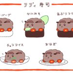 126 600 テディ寿司 チョコアイスに添えてあるのはニンジンの葉っぱ🥕 #モルカーファンアート 22/11/13 12:30