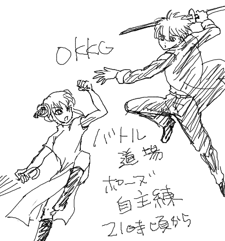 沖神バトル道場 昨日イチャイチャ(という程のものでもないけど)描いたらバトらせたく ポーズの自主練してます。自主練、落書きしたい方はどうぞ。 21時過ぎ頃から。 kuku.lu/p1e7963a #MagicalDraw