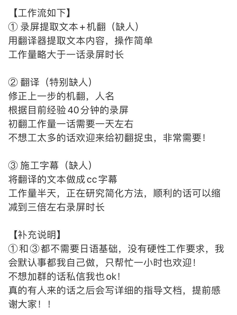 推也发吧总之在招汉化人手!!详情见p2 不想加群也可以私信我!我打开文档编辑权限就行 谢谢大家!😭 拡散希望