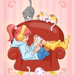 外は寒いけど暖かいお部屋で音楽を聞きながら雑誌をペラペラ にゃんこたちもまったりリラックス #イラスト #illustration #お絵描き #オリジナル #メディバンペイント #MediBangPaint #1月 #創作 #女の子 #猫