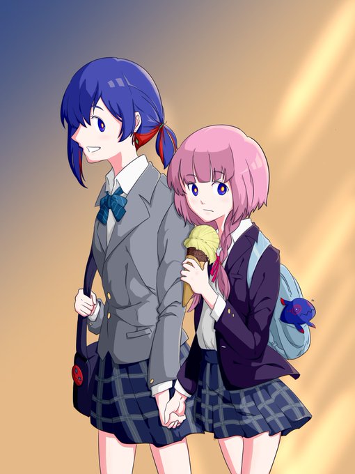 夕方、学校帰りの姉妹 #花譜美術部 #理芽美術部