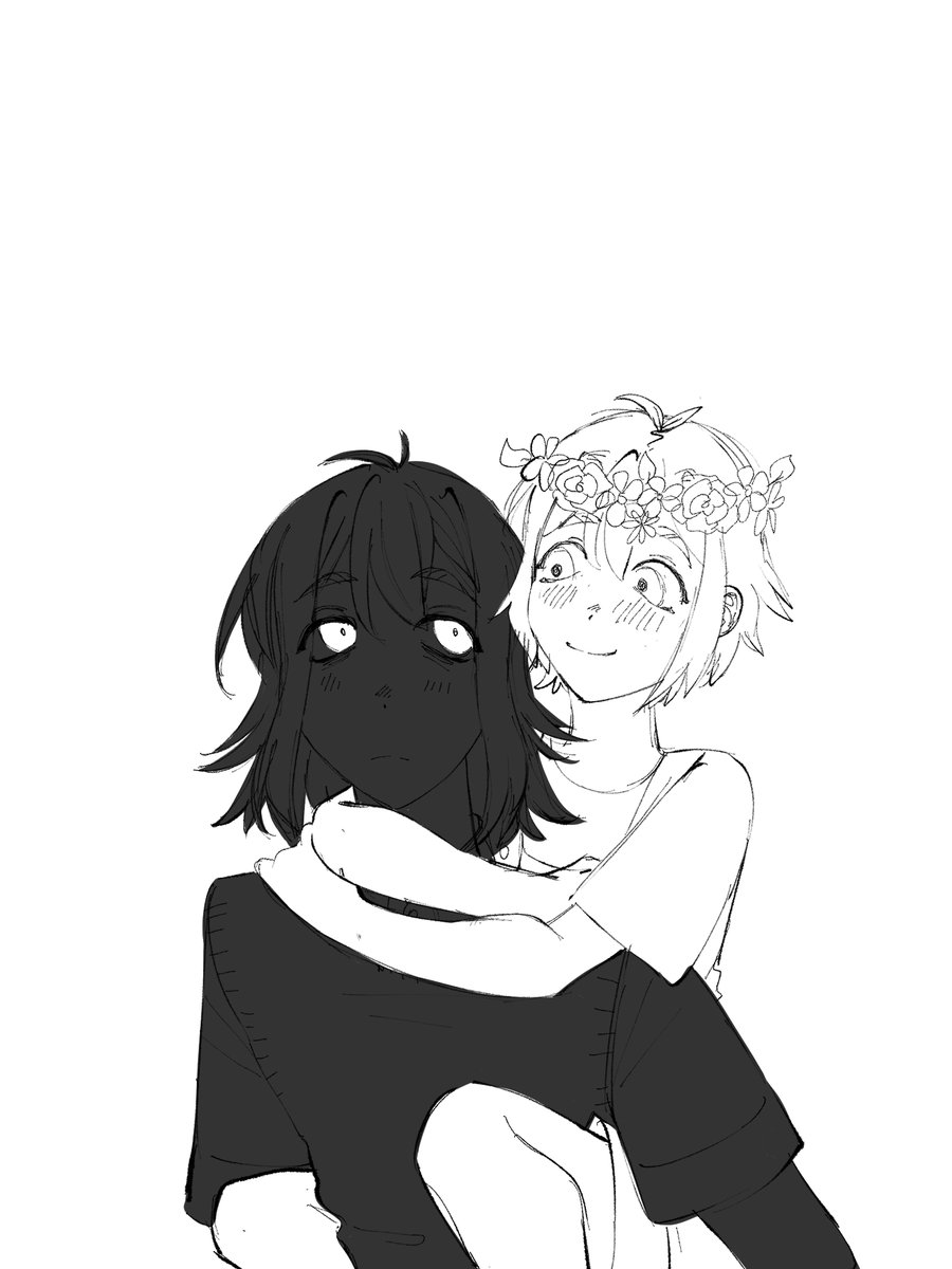 day 5: teasing slowly finishing sunflower week taking my time sunny/rowan counts as sunflower, right? idk but they're funny #OMORI #OMORIFANART #SunflowerWeek2023