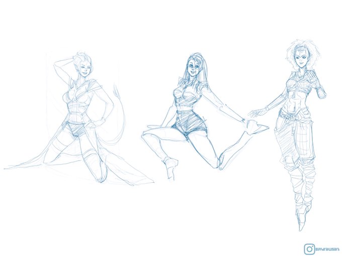 Warm ups to keep the hand loose and ready. 15-20 mins pose sketches. #art #sketch #warmup #drawing #ArtistOnTwitter #DnDcharacter #dndart #ArtistOfMalaysia #oc #characterdesign #DOODLES