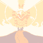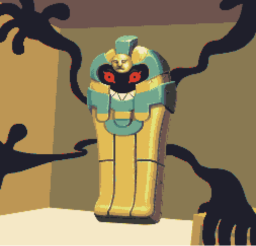 Running a day behind on #octobit/#pixel_dailies. Here are some teenagers come face-to-face with the #egyptiangod of the sun, Ra. (4 colors) #pixelart @Pixel_Dailies #octobit2019
