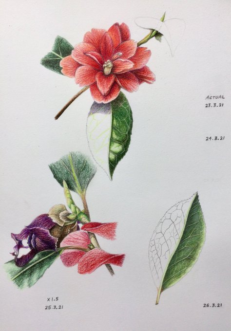 Camellia studies Watercolour pencil in sketchbook #thursdayvibe #flowers @NymansNT #drawing #artist #ArtistOnTwitter #artistsoninstagram