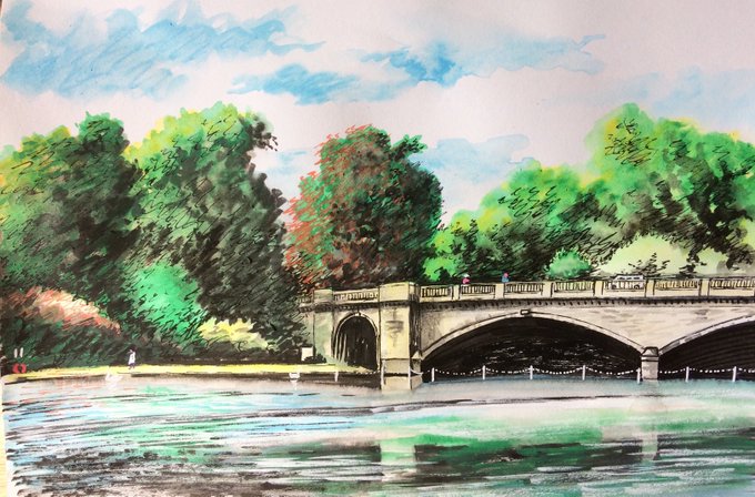 Serpentine bridge Posca pens in sketchbook #mondayvibe #sketching #London #artist #ArtistOnTwitter #artistsoninstagram