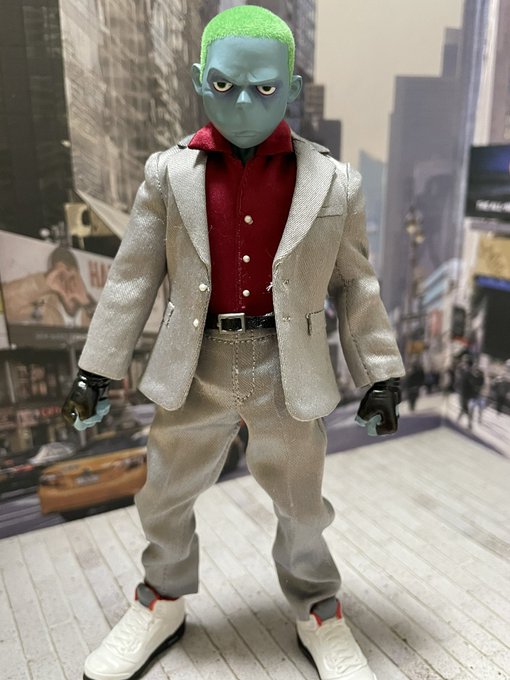 ケンエレファントの期間担当、mezcoのフィギュア軸に作ってんかってくらいピッタリなんだがw 卓球漫画とかで最初の方に出てくる強キャラ感出したザコキャラみたいになったけどw #オモ写 #ケンエレファント #mezco #mezcovapor