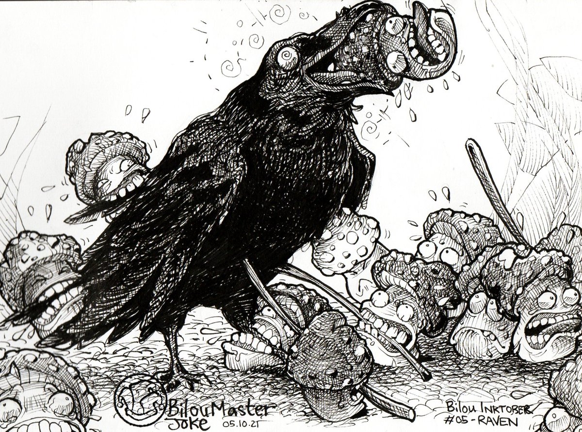Bilou #inktober2021 day 5 - Raven @inktober #inktober #character #mushroom #pen #art #drawing #illustration #draw #sketchbook #ink #artwork #bilou #artoftheday #doodle #bilouinktober #drawings