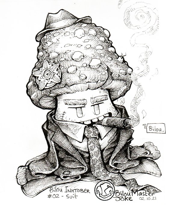 Bilou #inktober2021 day 2 - Suit @inktober #inktober #character #mushroom #pen #art #drawing #illustration #draw #sketchbook #ink #artwork #bilou #artoftheday #doodle #bilouinktober #drawings