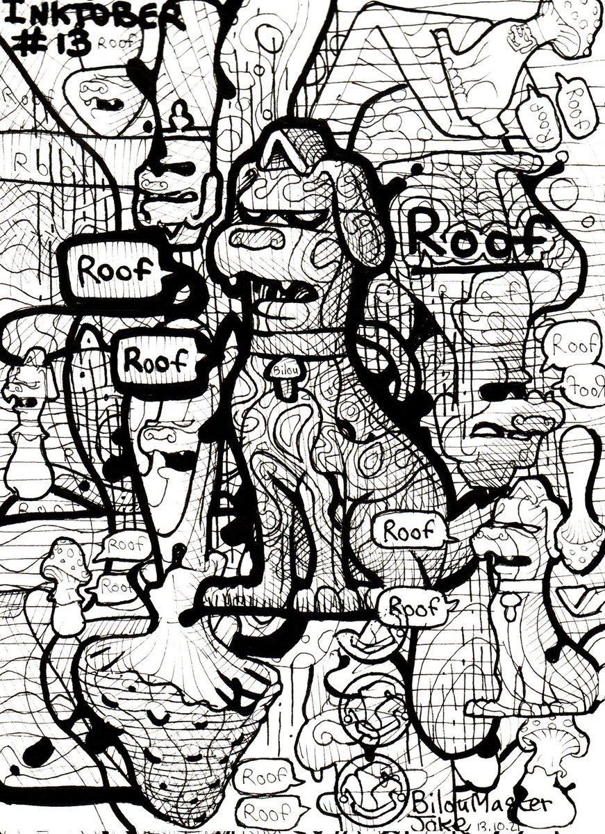 Bilou #inktober2021 day 13 - #roof ! @inktober #inktober #character #mushroom #pen #art #drawing #illustration #draw #sketchbook #ink #artwork #bilou #artoftheday #doodle #bilouinktober #drawings #psychedelic