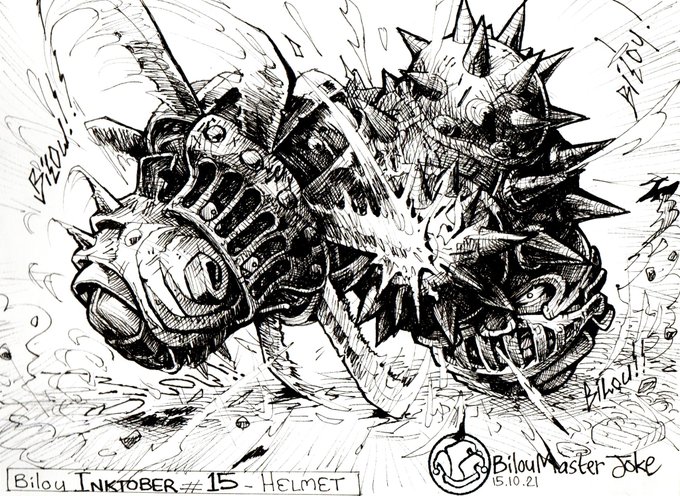 Bilou #inktober2021 day 15 - "helmet" @inktober #inktober #helmet #fight #armor #character #mushroom #inktoberchallenge #pen #art #drawing #illustration #sketchbook #ink #artwork #bilou