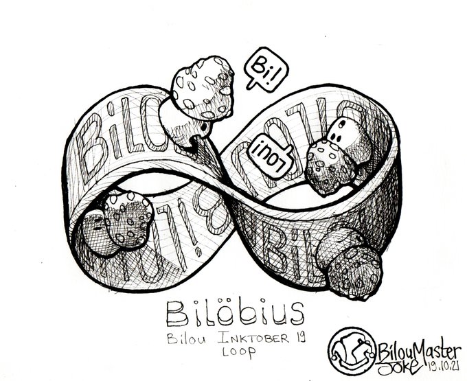 Bilou #inktober2021 day 19 - "loop" @inktober #inktober #loop #mobius #character #mushroom #inktoberchallenge #pen #art #drawing #illustration #sketchbook #ink #artwork #bilou