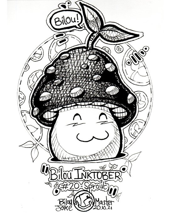 Bilou #inktober2021 day 20 - "sprout" @inktober #inktober #sprout #cute #character #mushroom #inktoberchallenge #pen #art #drawing #illustration #sketchbook #ink #artwork #bilou