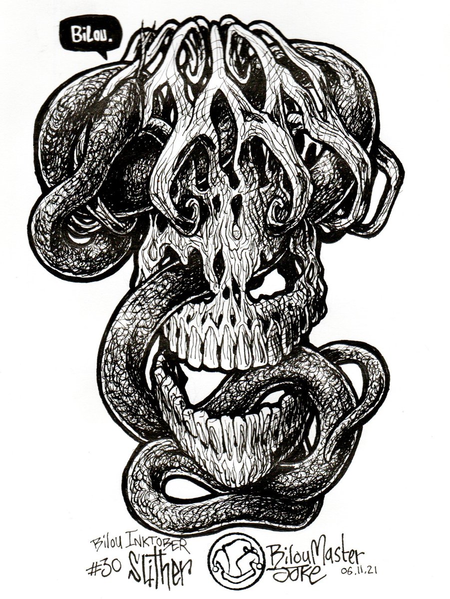 Bilou #inktober2021 day 30 - "slither" 🍄💀🐍 @inktober #inktober #slither #snake #skull #character #mushroom #inktoberchallenge #pen #art #drawing #illustration #sketchbook #ink #artwork #bilou
