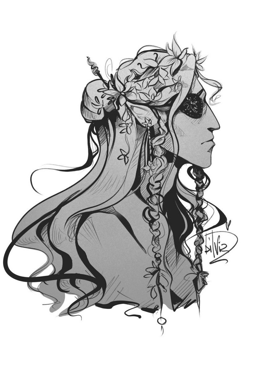 День 5. "Прическа" У меня аж три варианта этой картинки, два других - в реплаях. Вообще, думала, что у этой теме будут бифлифы, но нет #небесныйинктобер2022 #heavenlyinktober2022 #tgcf #HuaCheng #Inktober @neboktober - челлендж!