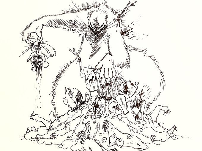 2 39 次回作ガンバの冒険の ノロイ皆殺し全滅フィギュアづくりの イメージ描いてみた 立体化したらかなり修正するだろうけど 23/05/09 21:52