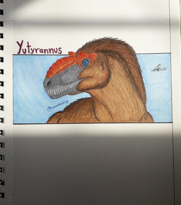 Ha pasado tiempo desde que dibujaba dinosaurios, así que decidí volver a mis raíces (por así decirlo). Aparte que es casi una tradición mía dibujar un Yutyrannus en esta época del año. #dinosaur #paleoart #yutyrannus #paleoartist #prehistoric #holidays #Christmas #drawings