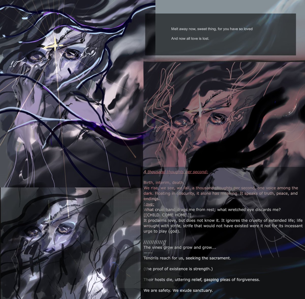 Armaments of all fashion sleep, partially sheathed between the cracks of a battlefield, where there is no place to run. And from Its gaze, there is no place to run. #Destiny2 #Destiny2Art #Destiny2AOTW