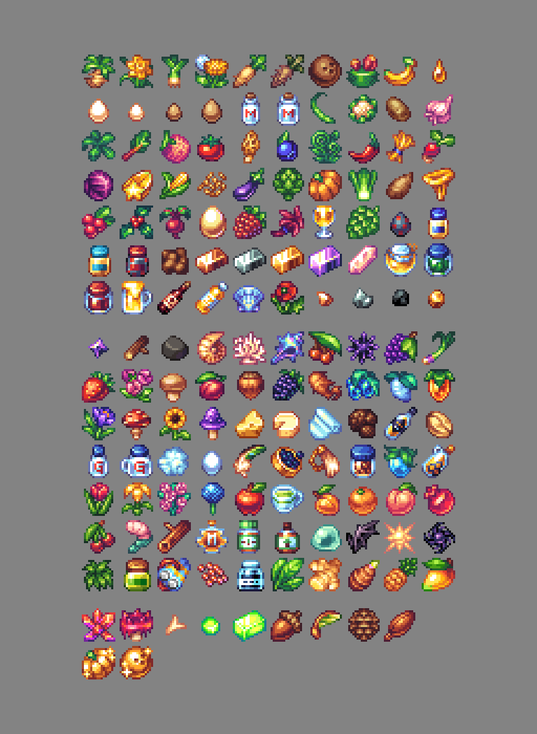 스타듀밸리 배송상자+나무드롭 아이템 도트 리메이크 #StardewValley Collections Items Shipped+tree drop items #pixelart remake