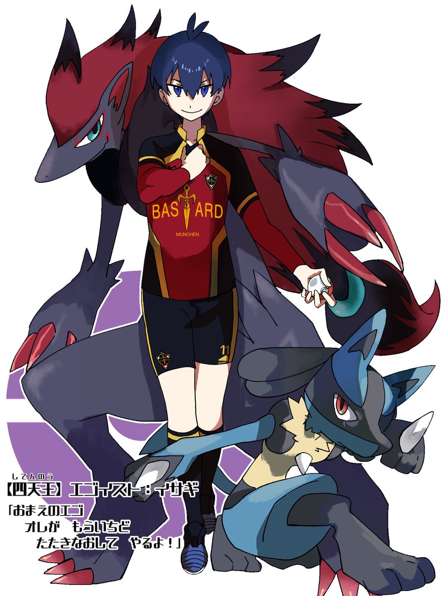 ⚠️ポケモ-/パロ イサギver 最初のジムリーダーであり、本性は四天王のひとり。相棒のリオル(ルカリオ)とは休みの日にサッカーをして遊んでいる。