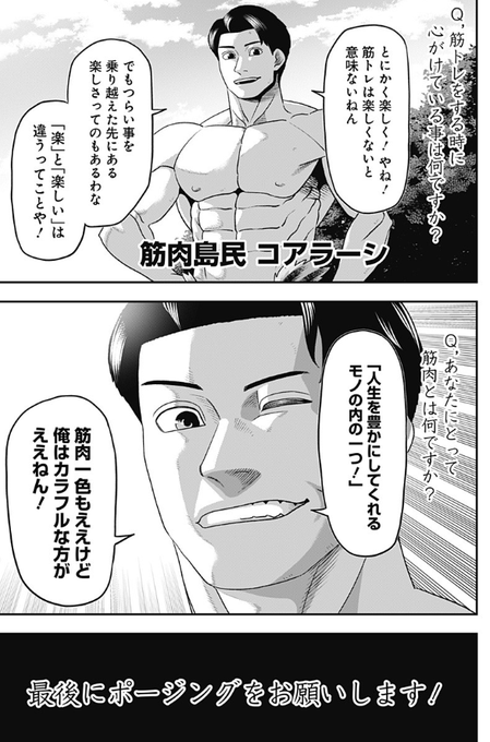 本日の『筋肉島』は特別編「マッチョインタビュー」の更新です! 今回はコアラ小嵐さんにインタビューさせていただきました! コアラ小嵐さん、ありがとうございました! [特別編2]筋肉島 - 成田成哲 | 少年ジャンプ+ shonenjumpplus.com/episode/485595… twitter.com/i/web/status/1…