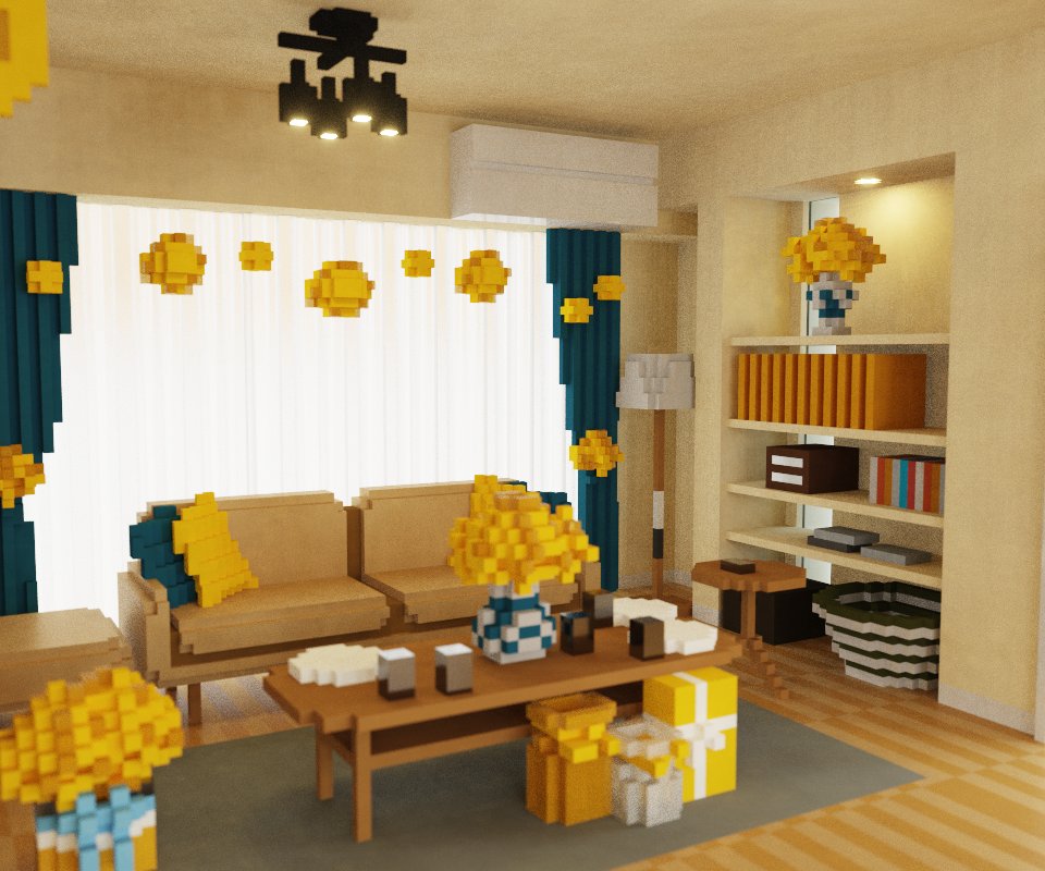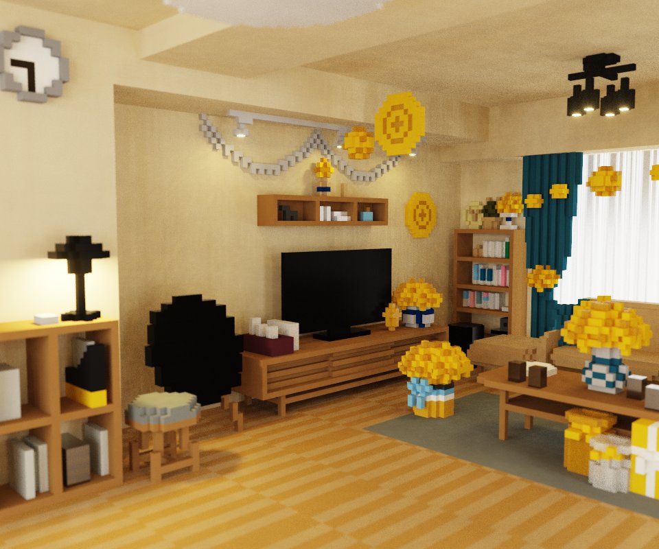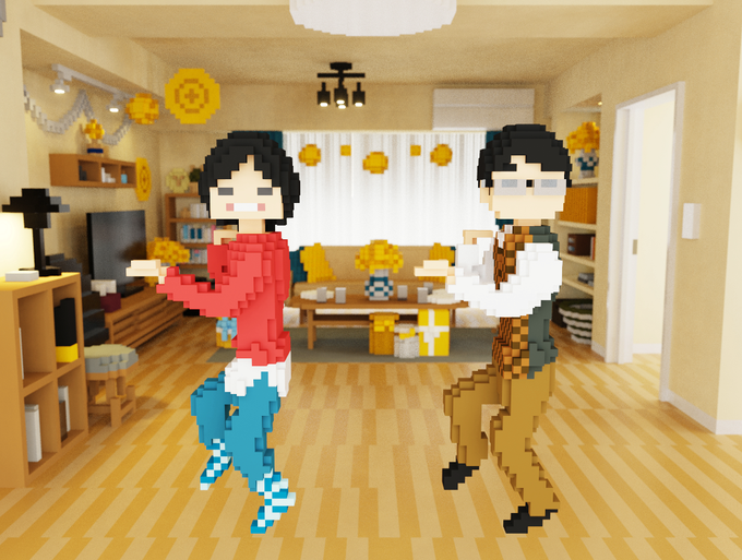 #逃げ恥 みくりさんと平匡さんが #恋ダンス をする303号室を #magicavoxel で再現してみた #voxelart #voxel